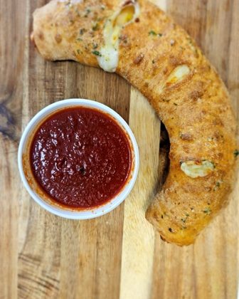 | Garlic Bread with Cheese 12″ hoagie smothered with garlic butter & covered with our personal mix of mozzarella cheeses, a dash of oregano & aged parmesan cheese, baked until crisp & sparkled with parsley & paprika |